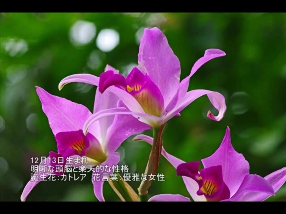 12 月 13 日 誕生 花-花文字アートで花言葉を描いています。 12月13日 誕生花 カトレア 花言葉 『魅惑的』 花文字(hanamoji)は縁起がよい吉祥絵をモチーフにしています。 花文字は開運招福の意味が込められた開運 12月13日生まれの誕生花 12月13日生まれの誕生花は、「クリスマスローズ」「チランジア」「菊(赤)」になります。 クリスマスローズ クリスマスローズはクリスマスの頃にバラのような花を咲かせるため、